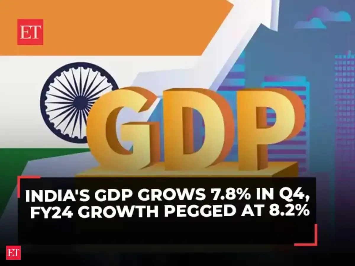 Beating the expectations of analysts, India's gross domestic product (GDP) grew at 7.8 per cent on an annual basis in the last quarter (Q4) of the FY24 . Further, the Centre now estimates the overall growth rate of FY24 to be 8.2 per cent, the Ministry of Statistics and Programme Implementation (MOSPI) data showed Friday.